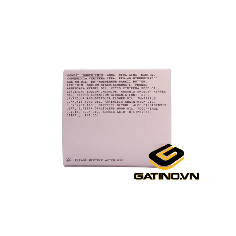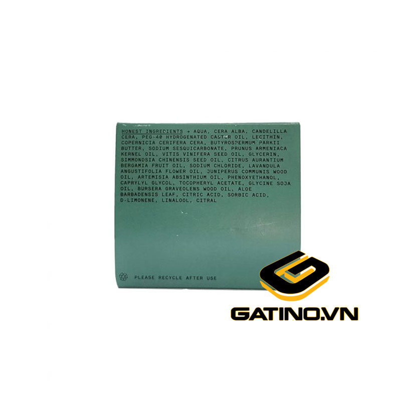 Aqua (water), Kaolin Clay, Cera Alba, Cetyl Alcohol, Polysorbate 60, Stearyl Alcohol, Copernicia Cerifera Cera, Prunus Armeniaca Kernel Oil, Butyrospermum Parkii Butter, Peg 40 Hydrogenated Castor Oil, Glycerun, Simmondsia Chinensis Seed Oil, Citrus Aurantium Bergamia Fruit Oil, Lavandula Angustifolia Oil, Juniperus Commmunis Wood Oil, Artemisia Absinthium Oil, Phenoxyethanol, Caprylyl Glycol, Burssera Graveolens Wood Oil, Aloe Barbadensis Leaf, Sorbic Acid, D-Limonene, Citral, Linalool